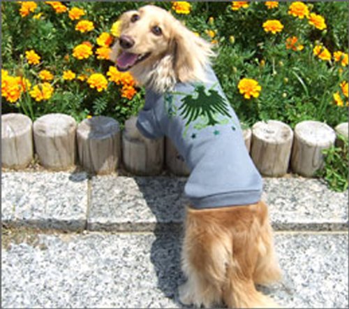Top quality Dog Sweatshirt. Made with high-grade Vintage Cotton 100% and accented with a condor emblem applique with a shining rhinestone eye. Machine washable (put in a laundry net is recommended to protect the applique) 3 colors (Red, Gray or Olive Green) in wide range of sizes covering from Chihuahua to Golden, GSD. Special sizes for Dachshunds and French Bull type also available. Manufactured in a sweat-shop free environment.